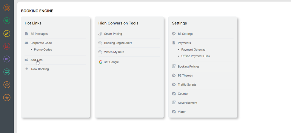 Masuk ke MAX extranet > Booking Engine> Add-ons.