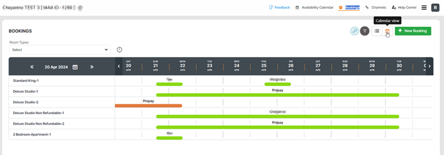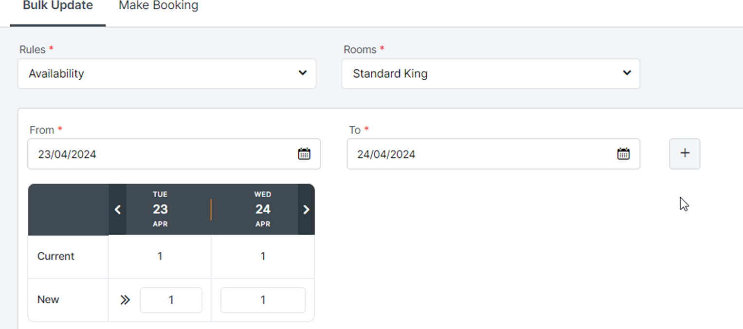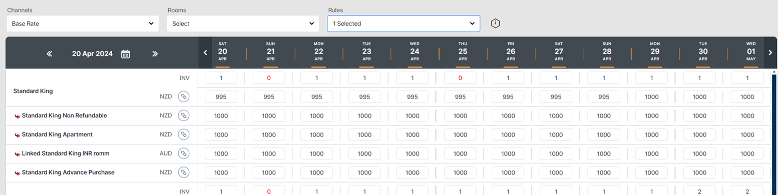 Tab ini memungkinkan milik ke mengelola milikmu ruang ketersediaan/tarif/pembatasan sebagai Sehat sebagai membuat A reservasi