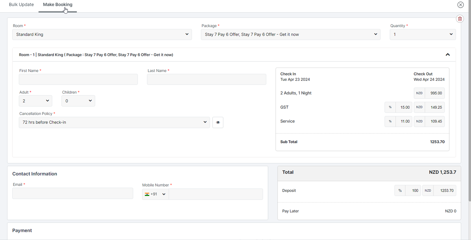 Detail tamu: Masukkan nama pemesan, dan jumlah tamu (dewasa/anak-anak). Informasi Pribadi: Masukkan nomor kontak dan email pemesan.