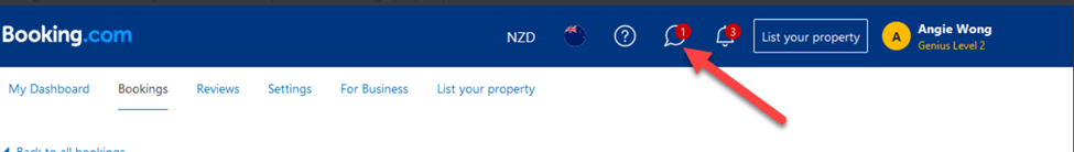 •Akan ada ikon “Message” untuk setiap pemesanan Booking.com.