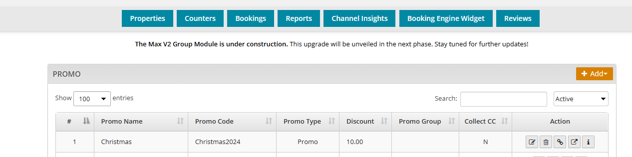 Fitur ini memungkinkan properti untuk mengatur promo code pada tingkat grup untuk beberapa/semua properti. Promo code yang dipasangkan pada tingkat grup akan berlaku pada Booking Engine.