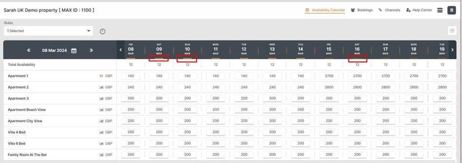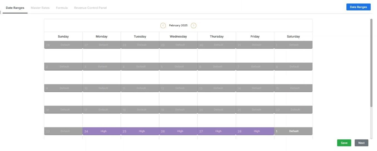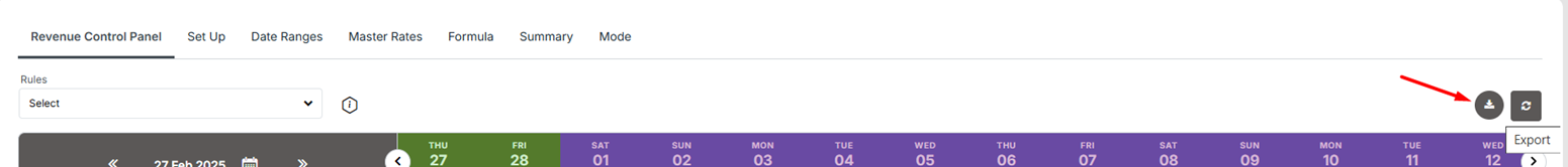 •Properti juga memiliki kemampuan untuk menyesuaikan tarif secara manual melalui Tab Kontrol Pendapatan. Dengan memilih tanggal/kamar yang berlaku, Anda juga dapat membuat perubahan.
