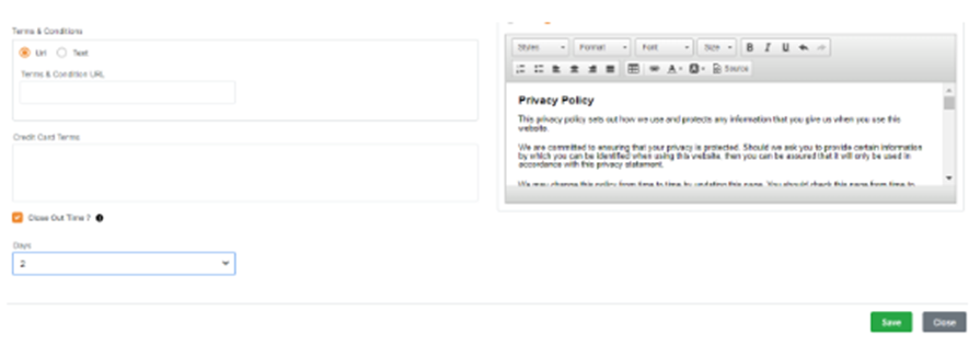 Pilih Waktu Penutupan (Close Out Time) dan simpan