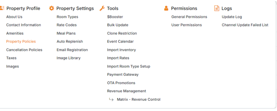 Masuk ke STAAH MAX > Menu Utama (Mega Menu) > Kebijakan Properti (Property Policies)