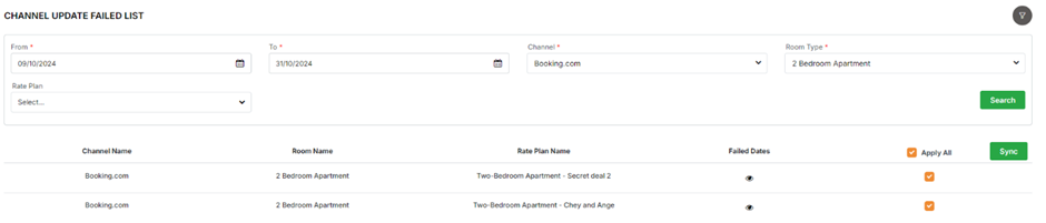 2. Perbarui Rentang Tanggal > Pilih Channel > Pilih Tipe Kamar > Klik Search