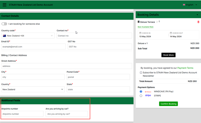 Kolom ini akan terlihat setelah pemesan memilih “Book Now”. Pemesan kemudian dapat memasukkan detail yang diminta – jika diperlukan.