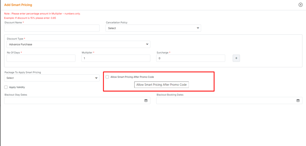 1. Saat menambah atau mengedit smart pricing yang ada, centang kotak "Allow Smart Pricing After Promo Code"
