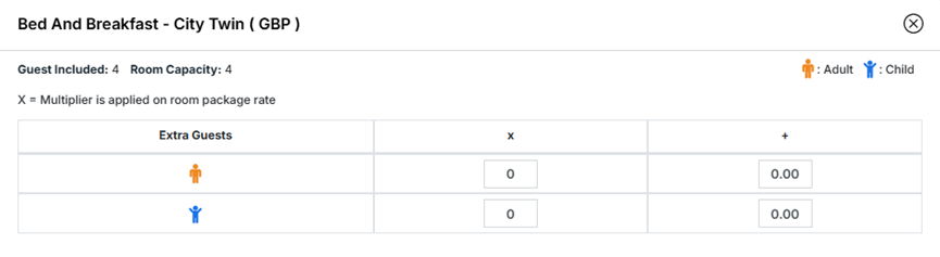 Biaya Tamu Tambahan dengan Tarif Tetap (+/-): Memungkinkan properti untuk menerapkan biaya tamu tambahan tetap, yang tidak dihitung berdasarkan Tarif Paket Kamar.