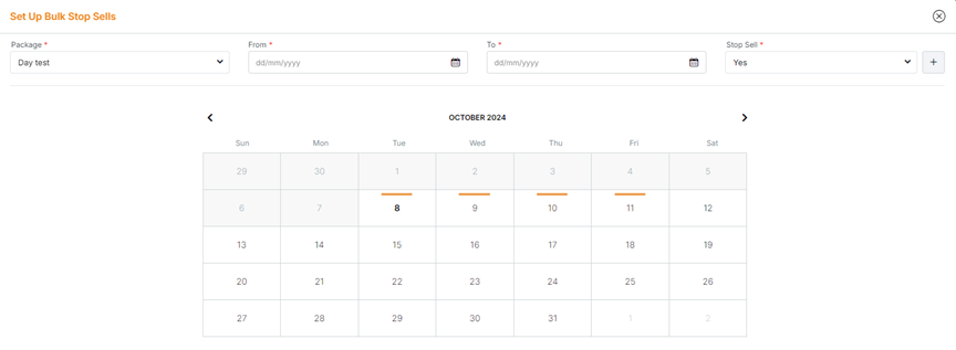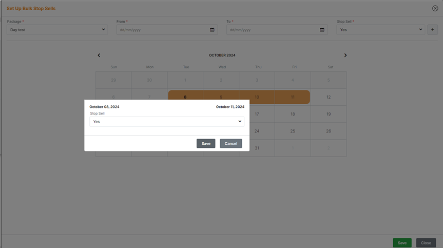 Pilih rentang tanggal untuk penghentian penjualan (stop sell ), pastikan opsi "Yes" telah dipilih.