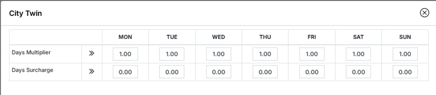 Fitur ini memungkinkan properti untuk menambahkan penyesuaian harga (mark up/down) untuk hari tertentu dalam seminggu tanpa harus mengatur beberapa tanggal validitas.