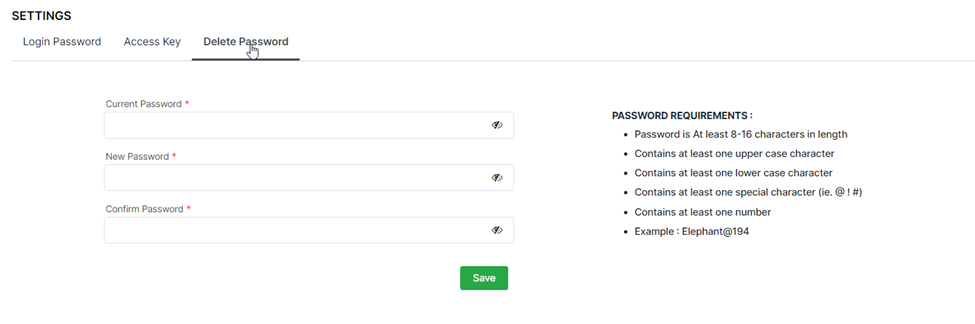 Password Delete digunakan untuk membatalkan pemesanan melalui Booking Engine (BE) dan menghapus detail pada STAAH MAX. Anda dapat mengganti Password Delete yang saat ini digunakan melalui STAAH Extranet.