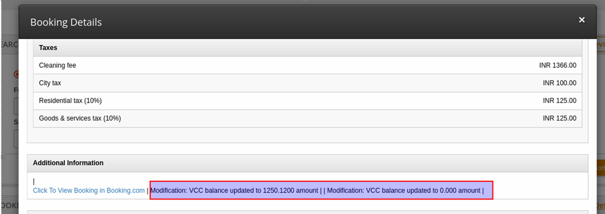 Note: Our team contacted Booking.com regarding the multiple modifications that we are receiving for some bookings. In some cases, we have received over 90 VCC change notifications with the same VCC balance. Booking.com has confirmed that it is a known bug and they are working on it.