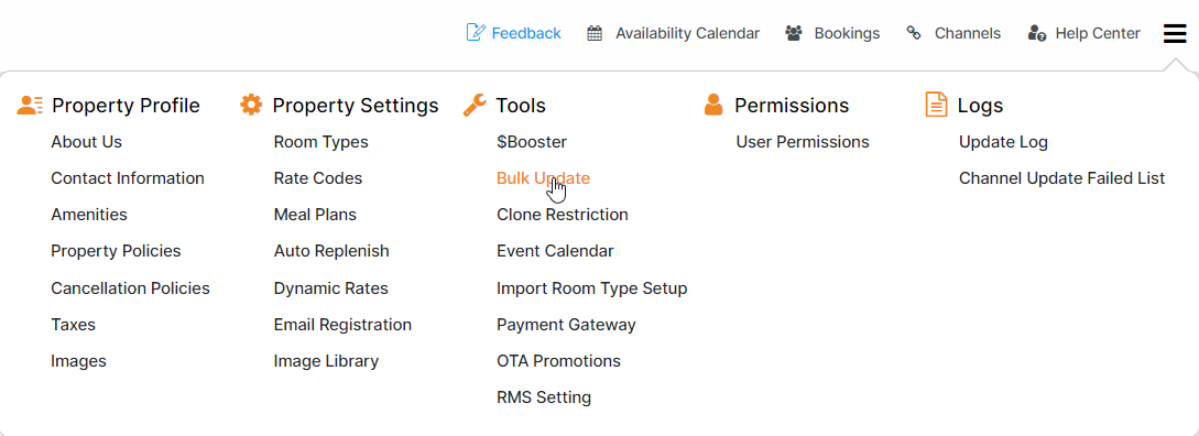 Cập nhật hàng loạt là công cụ được sử dụng để cập nhật Tình trạng sẵn có/Giá vé/Hạn chế hàng loạt, tức là cho những ngày ngoài chế độ xem lịch 14 ngày.