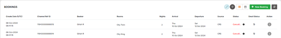2. Kemudian pilih Cancelled untuk melihat daftar reservasi yang hanya dibatalkan.