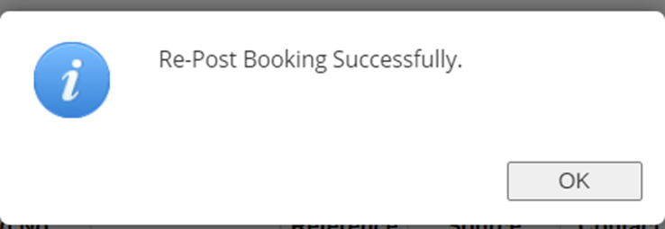 5. Pesan Konfirmasi akan ditampilkan setelah pemesanan berhasil diposting ulang.