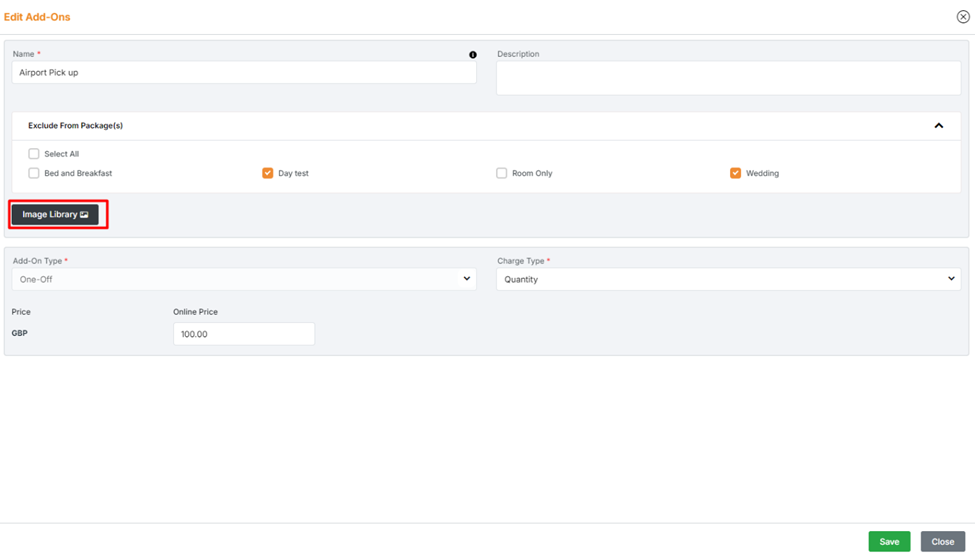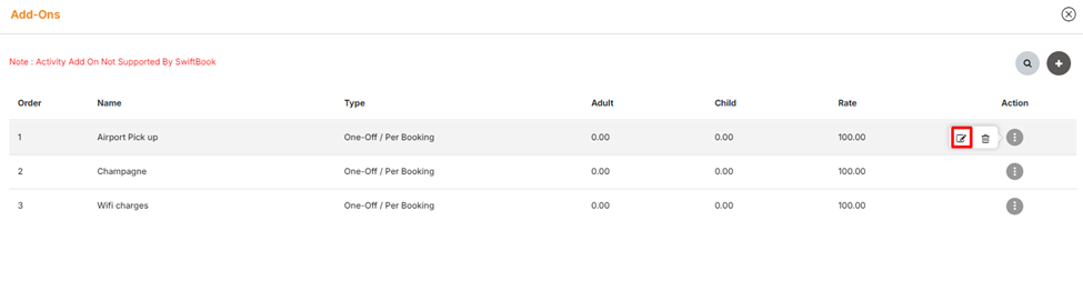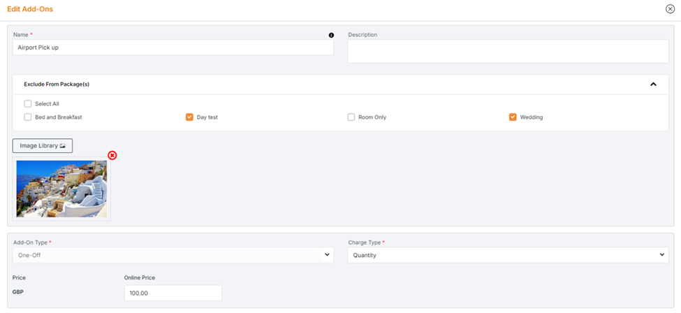 Masuk ke Booking Engine > ADD-ONS > Pilih ikon "EDIT" untuk Add-On yang ingin Anda aplikasikan gambar baru.