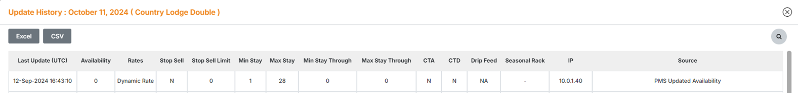 Semua pembaruan yang dilakukan terhadap ketersediaan (Availability) dari PMS akan ditampilkan.
