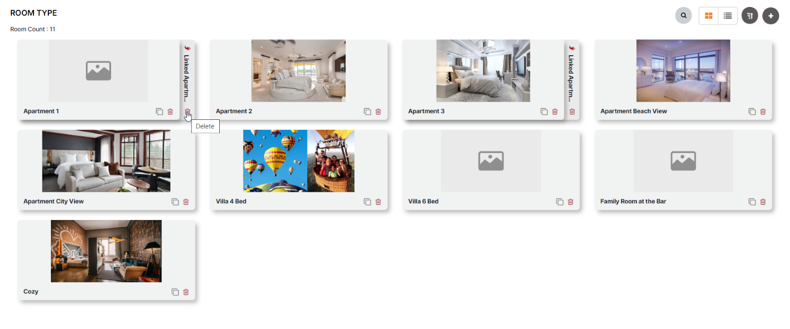 Nhấp vào biểu tượng Xóa để xóa loại phòng