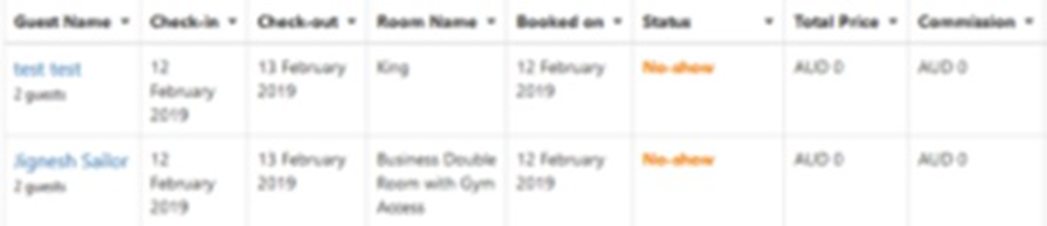 Properti memiliki kemampuan untuk menandai pemesanan sebagai "No Show" secara langsung di STAAH. Hal ini dapat dilakukan untuk semua reservasi Booking.com, setelah tanggal check-in.