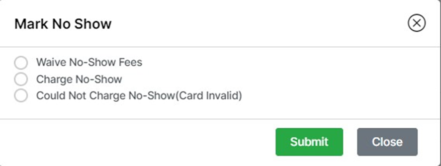 • Menandai No Show dan mengkonfirmasi biaya yang dikenakan