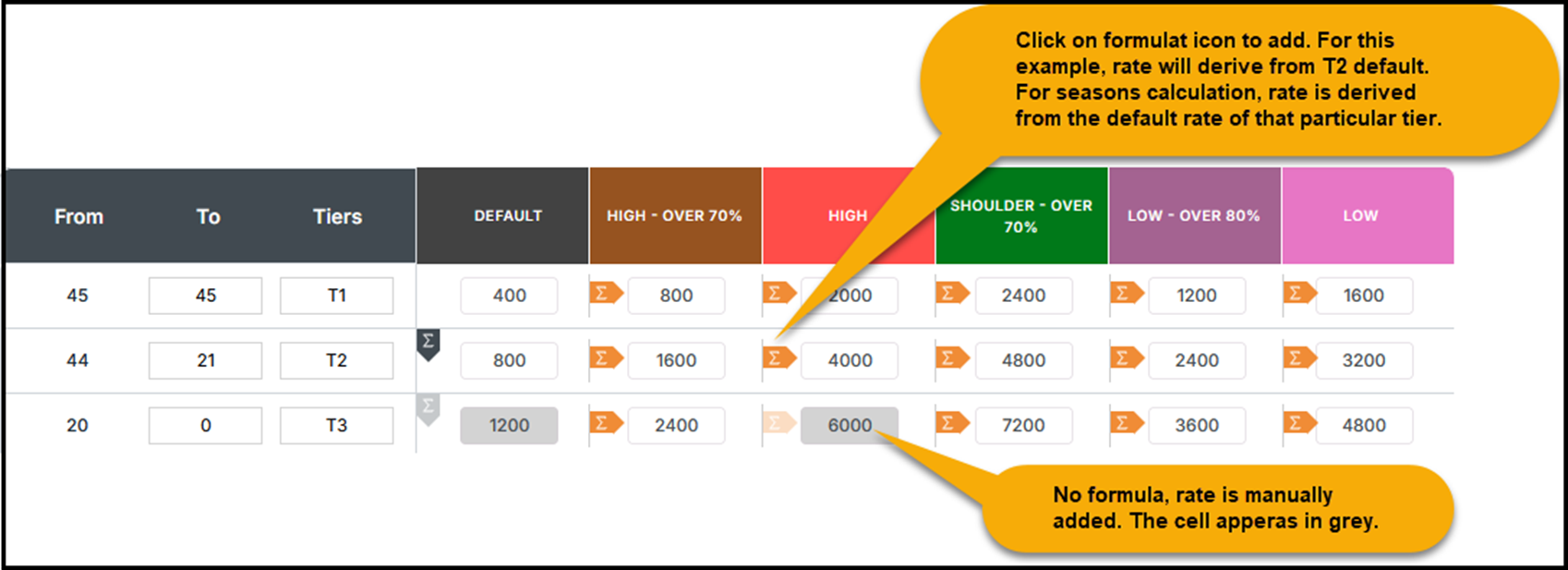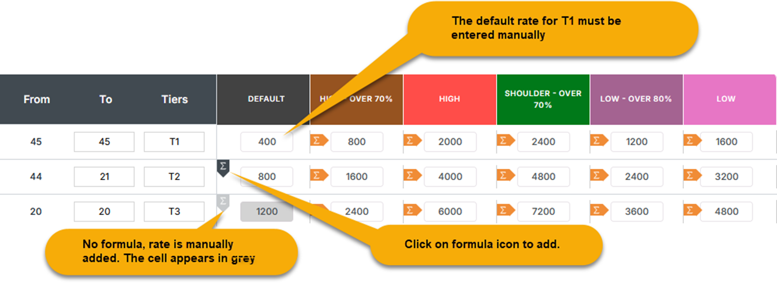 •Rate for all tiers are derived from ‘Default T1’
