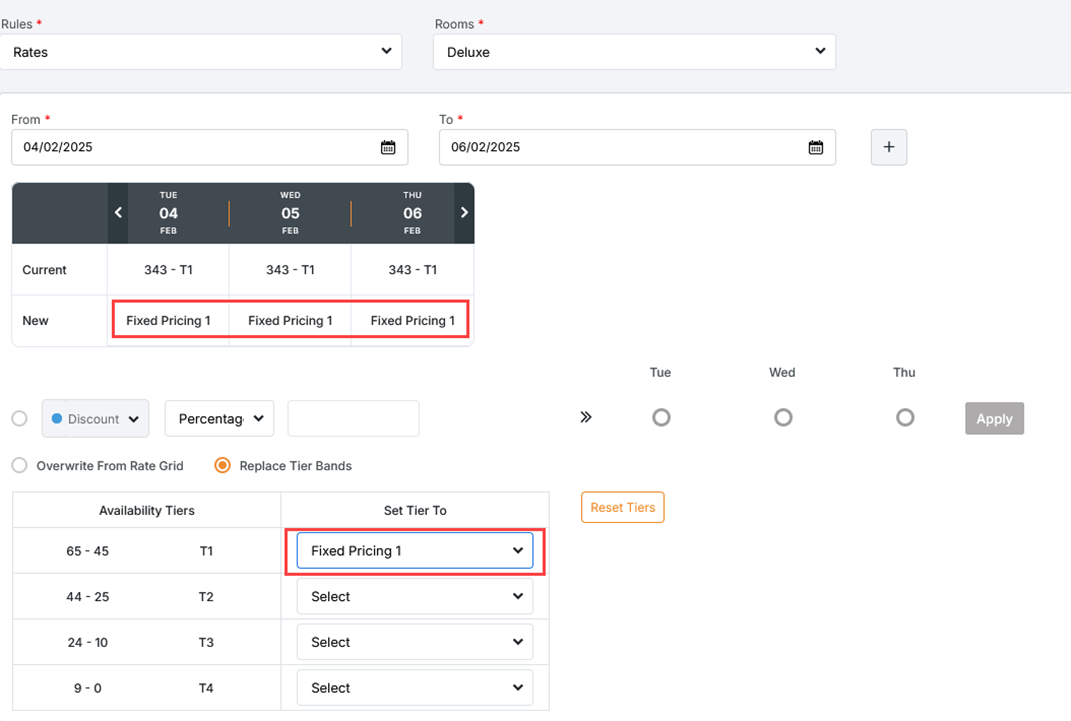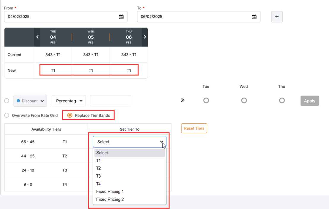 New Rate Management Feature: Replace Tier Bands Instead of updating the rate, you can replace it with a ‘Tier’. The rate for the new tier will apply regardless of the configured inventory block for the original tier. You can also use a ‘Special Tier’.