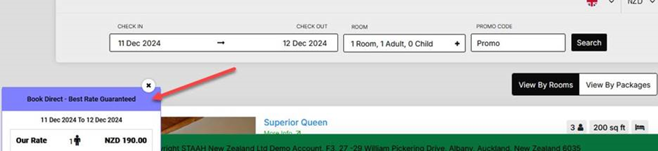 This product can be offered to STAAH properties subscribing to Swiftbook. It is a tool to help properties drive more direct bookings via their own website/ booking engine. The widget displays the lowest available rate searched, properties have the option to offer either a discount or value add if customer book directly using WMR.