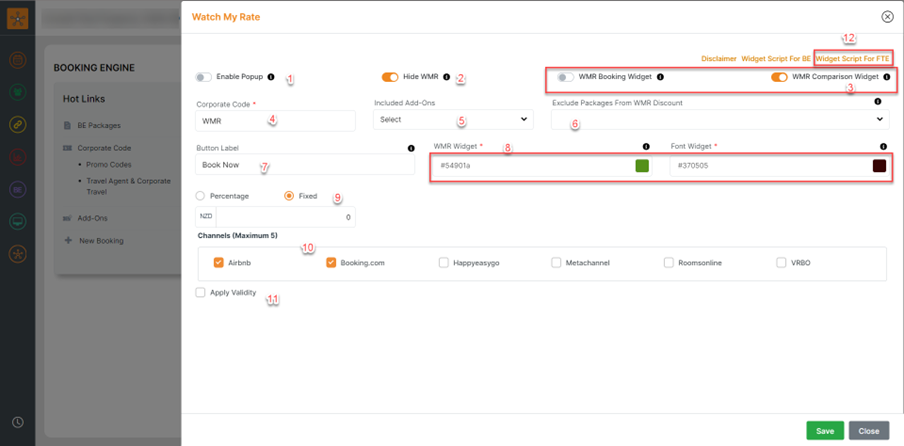 11.Apply Validity – Enter Booking and Stay Dates to which you would like to apply WMR discount (only applicable when widget is loaded on the website)