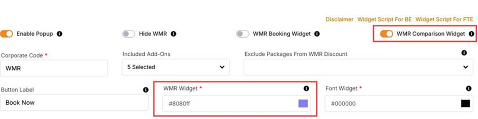 6.Exclude Packages – Select packages to exclude from WMR discount. By default, discount is applied to all public packages (Only applicable if widget is loaded onto website)