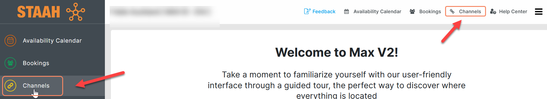 'Channels' tab can be accessed from 2 places, as shown in below screenshot: