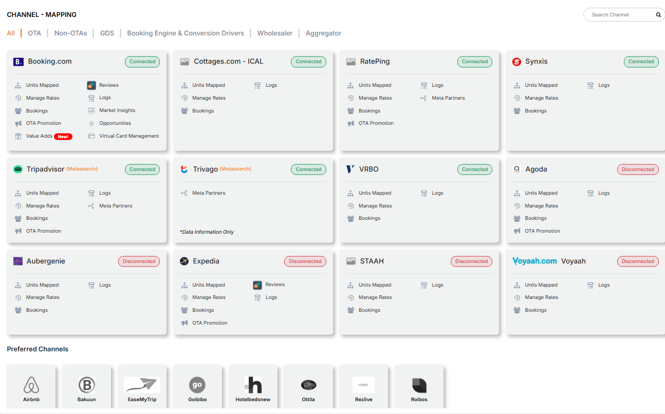 - Preferred Channels are given preference and listed separately at the top (If not connected)