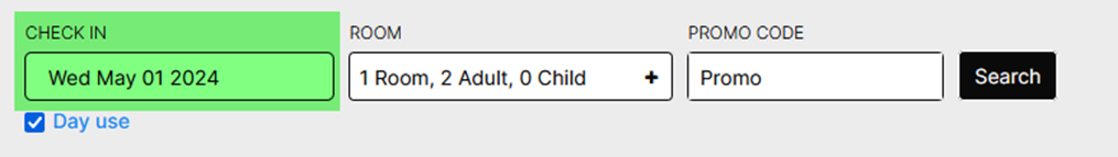 1.When the ‘day use’ option is selected, the widget will only have ‘check-in’ date option.