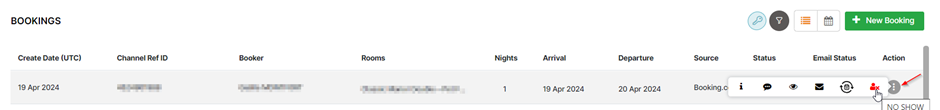 Properties have the ability to mark a booking as a ”No Show” directly in STAAH. This can be done for all Booking.com reservations, after the check in date.
