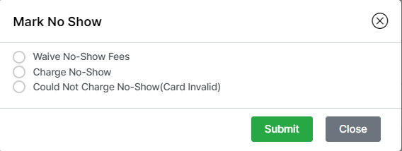 - Mark No-Show and confirm fees waived