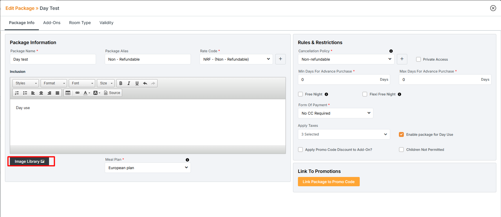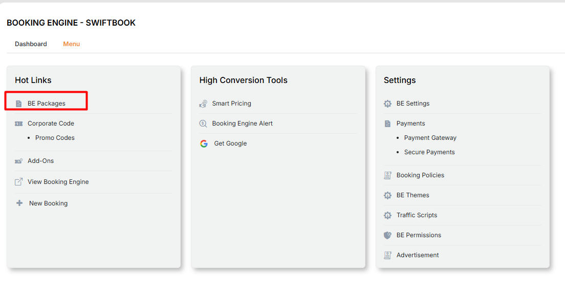 3. To apply image to a package. Go to Booking Engine > BE Package