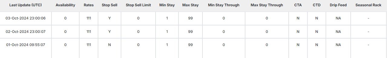 In logs, you can see current availability in STAAH MAX, with Minimum Stay Restriction-and Stop Sell pushed out automatically: