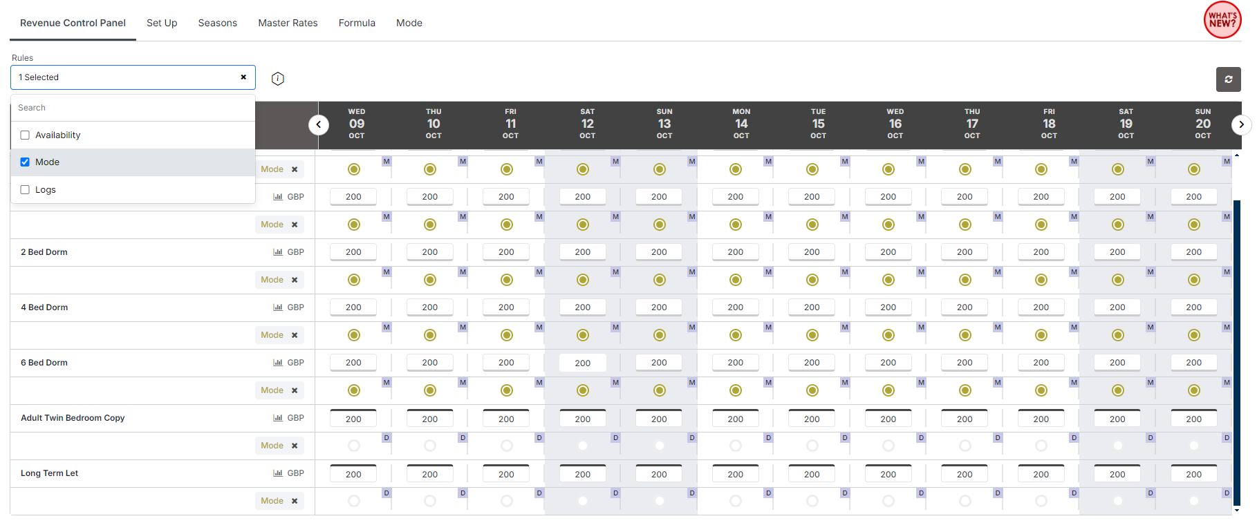 Manual Mode – Rates are updated manually and will override Dynamic Pricing/Formula settings
