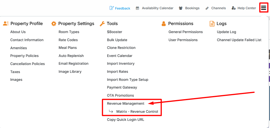 Login > Mega Menu > Matrix-Revenue Control > Revenue Control