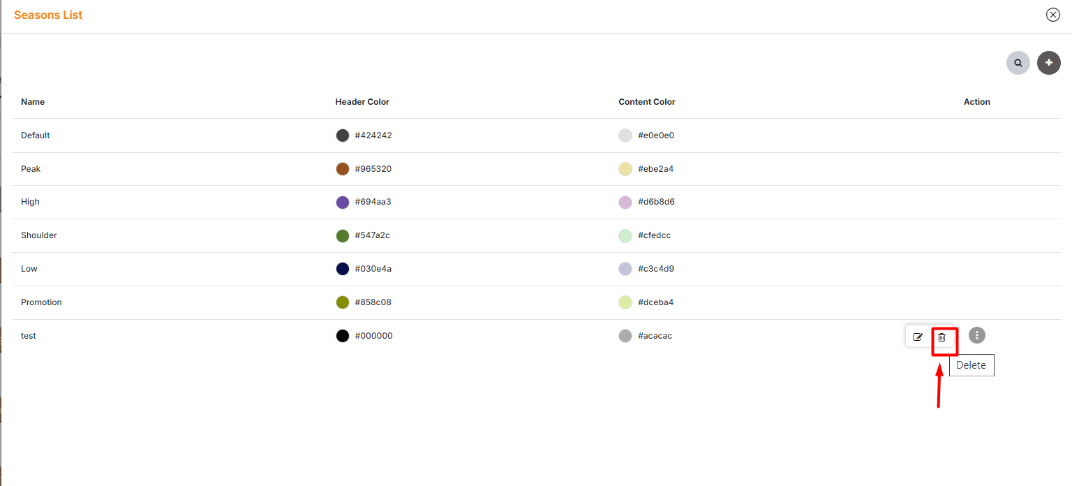 a. Click edit icon to make changes to new seasons. Default seasons, cannot edit