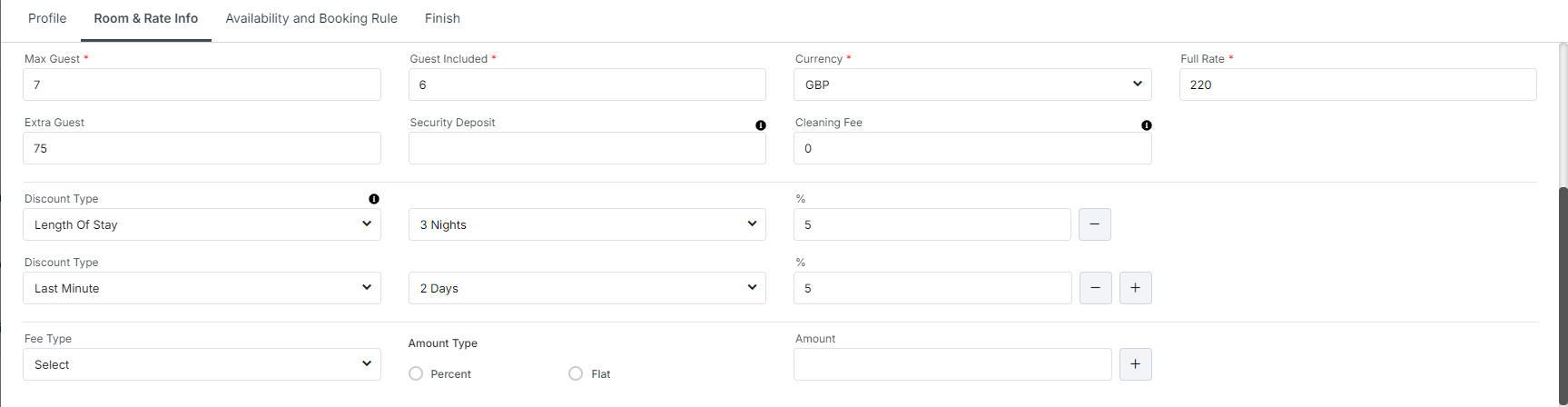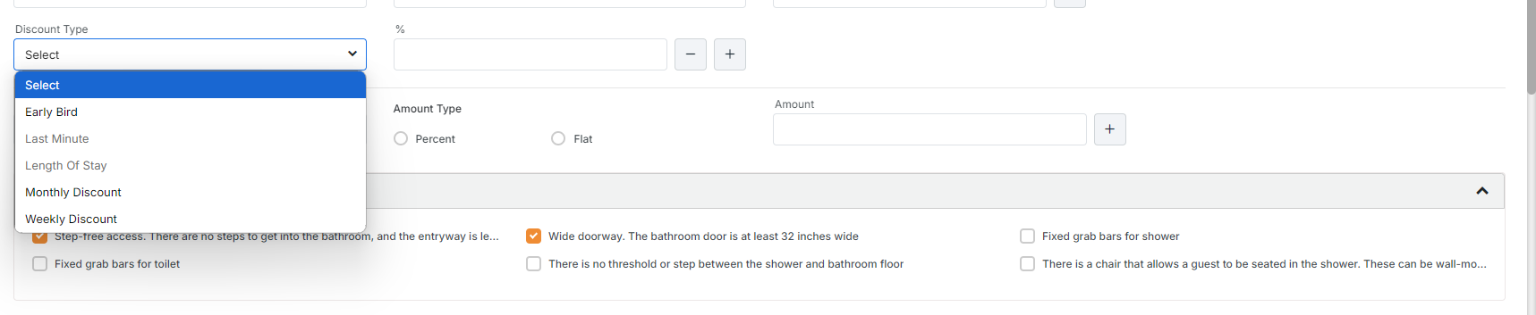 Ø Depending on the discount type, apply discount setting requirements (Days/ Weeks/ Months). The date range drop down box will display on selecting discount type. The days/ weeks/ months are set and pre-determined by Airbnb.