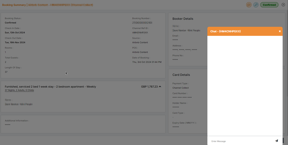 - There will be a ‘Message’ icon for each Airbnb Content booking