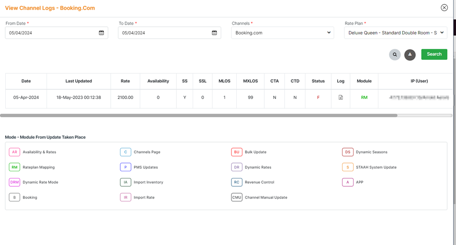 Channel Update log records and displays all the updates of Availability, Rates and Restrictions pushed to the Channel.