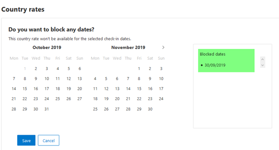 3.Blackout dates: Select dates when this Promotion is not applicable. The promotion can't have more than 30 blackout dates.
