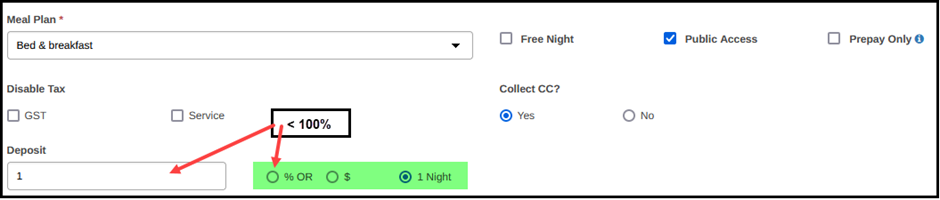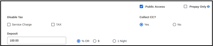 Regardless of the deposit setup, if the credit card flag is turned off, it will be considered a direct confirmation booking. This means no payment or credit card details will be collected at time of booking.