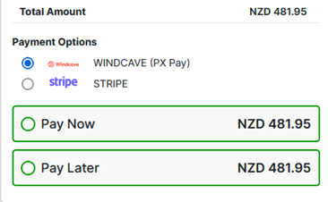 enabled. This setup will offer guests the choice to ‘Pay Now’ or ‘Pay Later’.