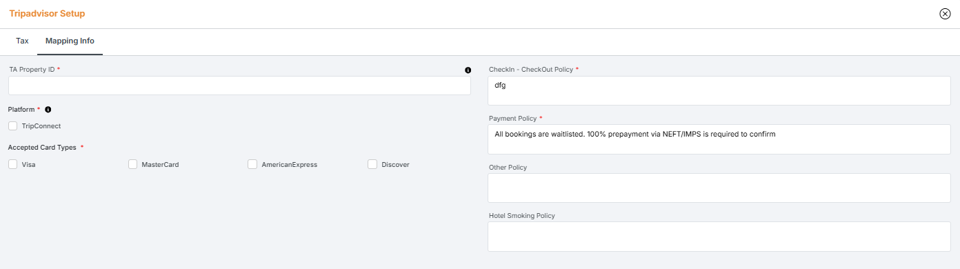 • Select Meta Configuration > enable ‘TripAdvisor Toggle