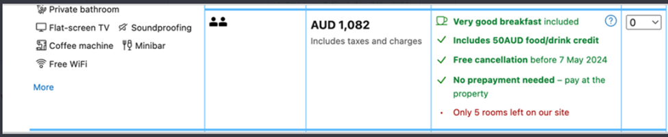 Contoh value-add yang ditampilkan di platform Booking.com: