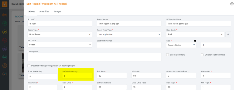 Default Availability diatur di dalam masing-masing Tipe Kamar.
