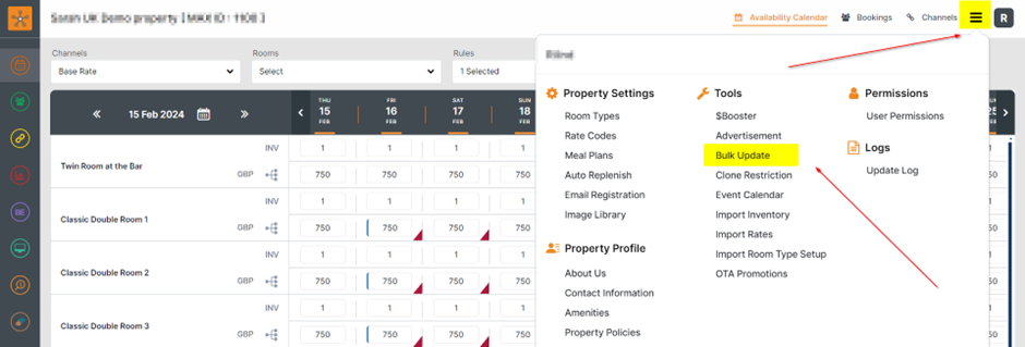 Anda dapat mengatur Ketersediaan (Availability) menggunakan STAAH MAX untuk menambah atau mengurangi jumlah kamar (atau memperbarui inventaris) dengan beberapa cara berikut: