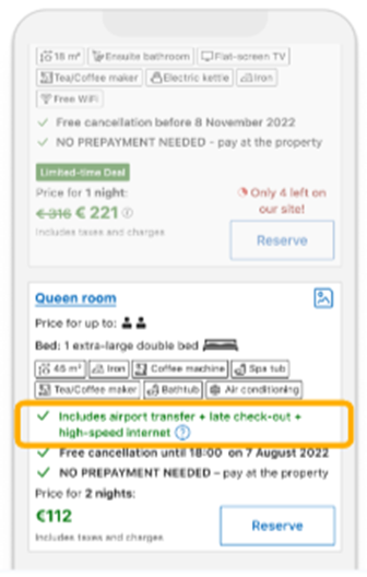 5. For some value-adds, you need to indicate an amount. The specified amount is used only for display purposes on Booking.com and to show the benefit of the specific value-added service. The room rate indicated is the final price shown to the guest.